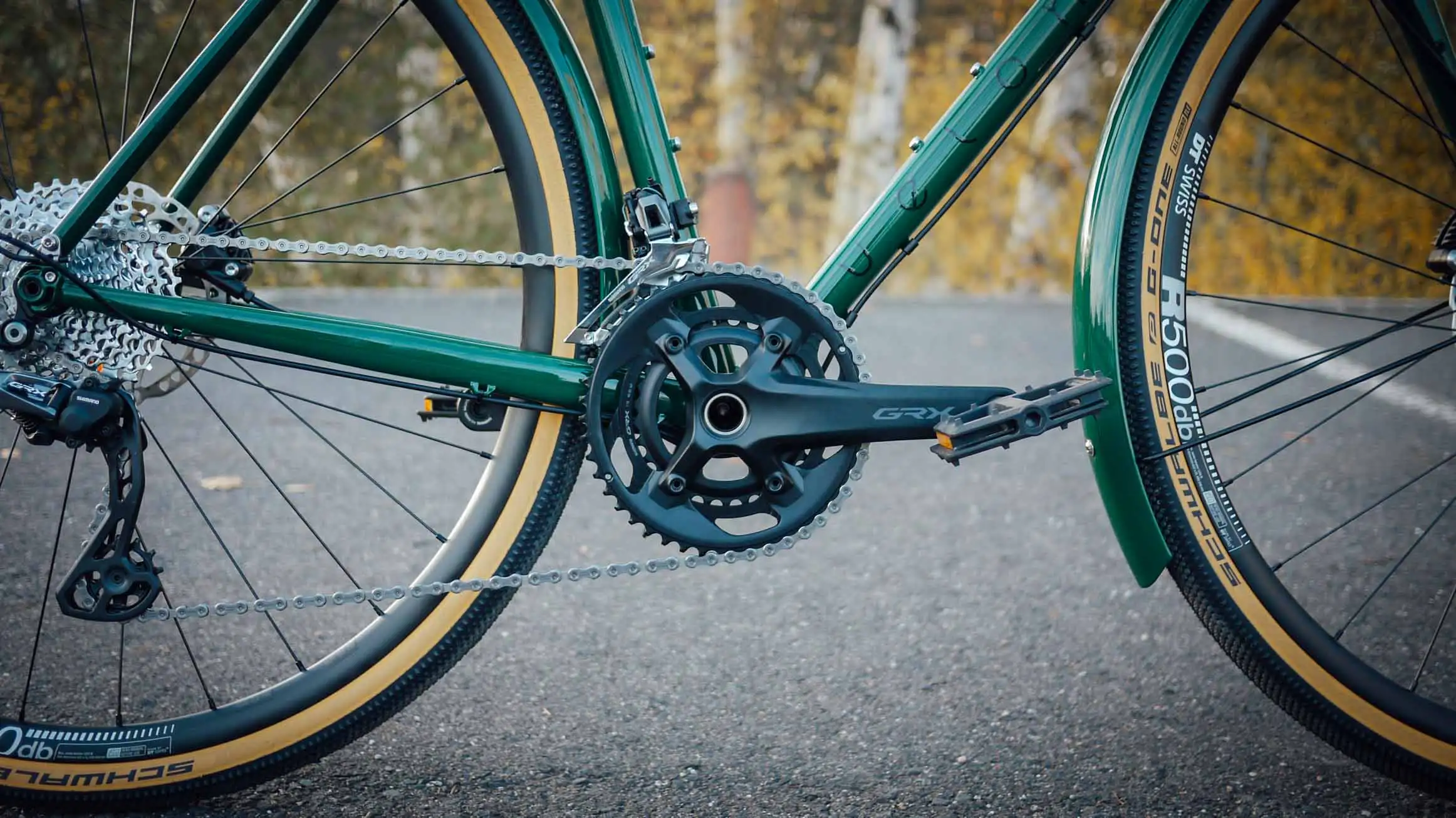 Als Schaltgruppe verrichtet die momentan sehr beliebte Shimano GRX 2×11 Schaltgruppe Ihren Dienst am Rad. Gerollt wird auf unseren Serienlaufrädern von DT Swiss mit Schwalbe G-One Allround Classic Skin Bereifung. Fazit: Ein rundum solides Allzweck-Rad für schnelle Touren und Arbeitsweg auf unterschiedlichen Untergründen.