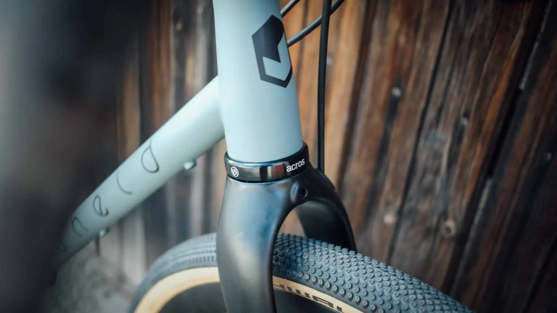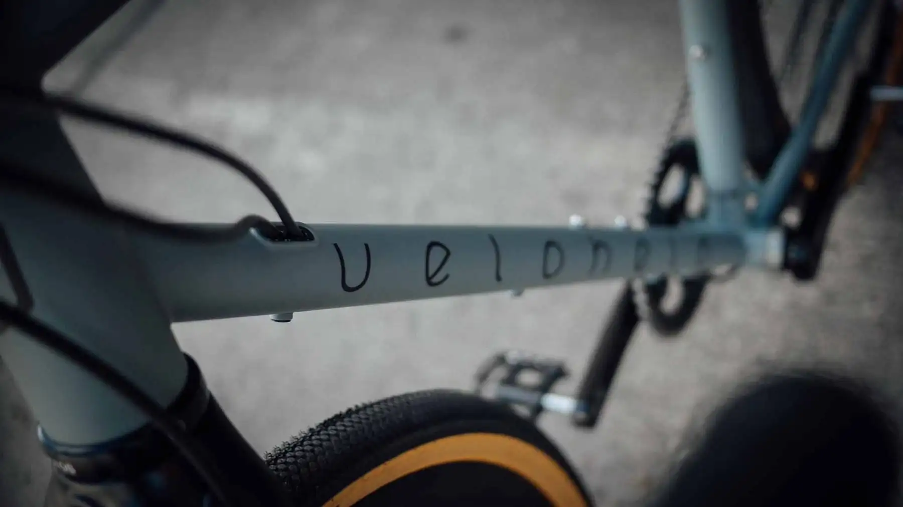 Der Rahmen mit der neuen geschraubten Zugführungen im Unterrohr bekam natürlich auch die neue veloheld Carbongabel, mit Ösen für Anything Cages an denen Ihr Eurer leichtes Gepäck transportieren könnt.