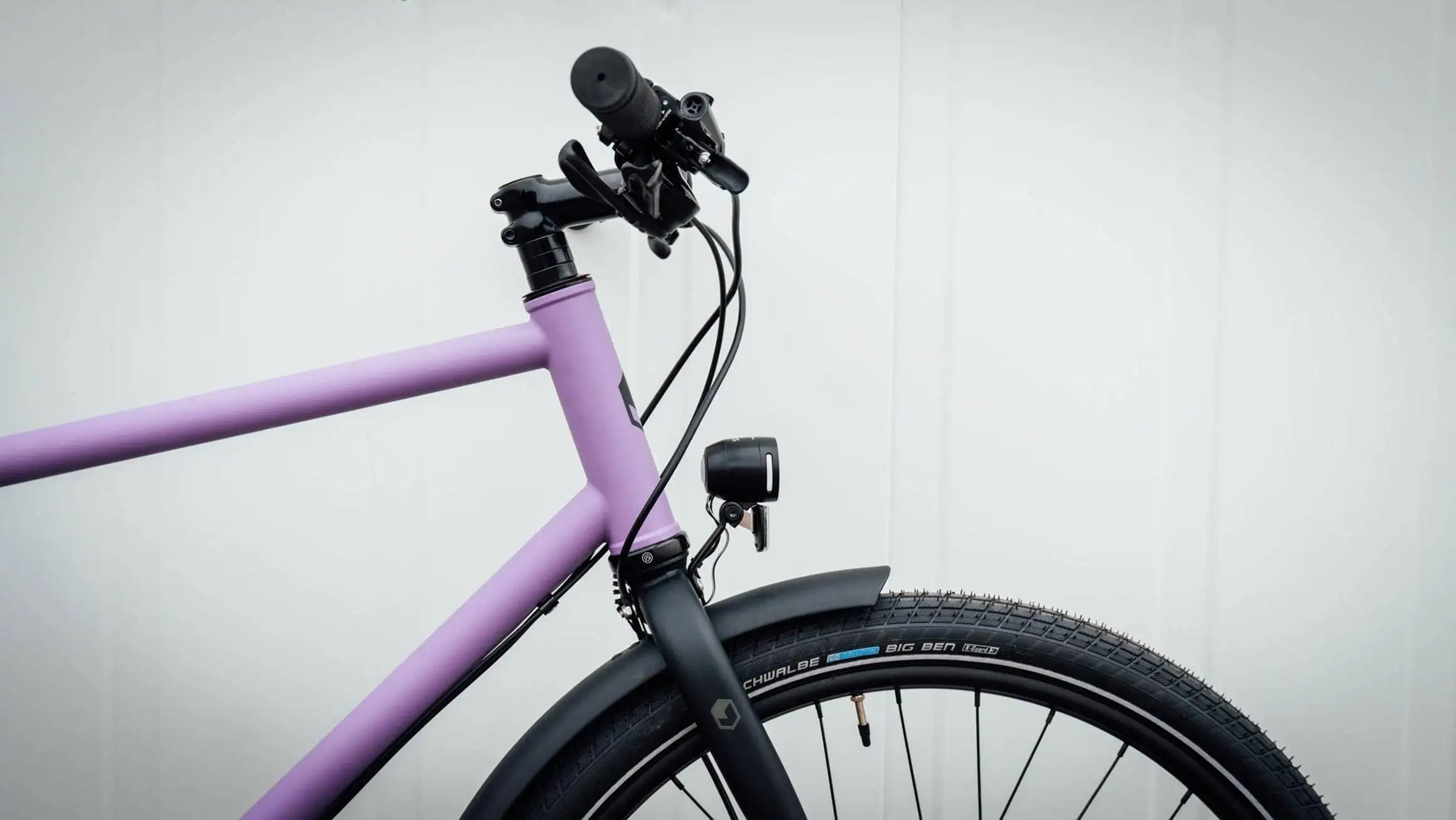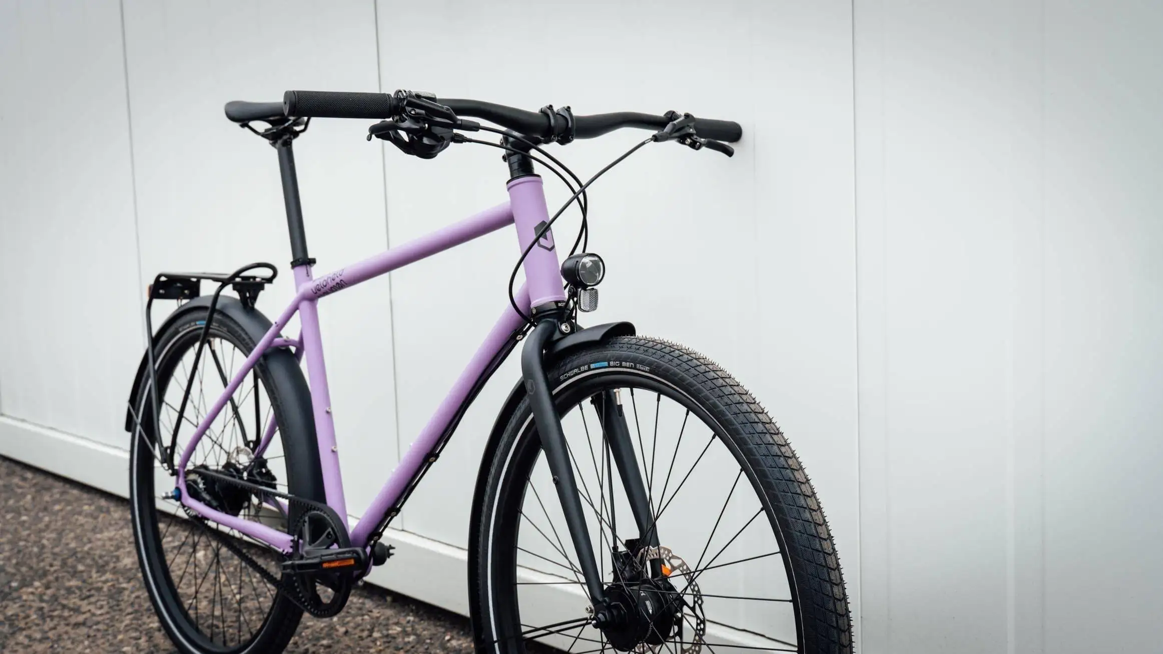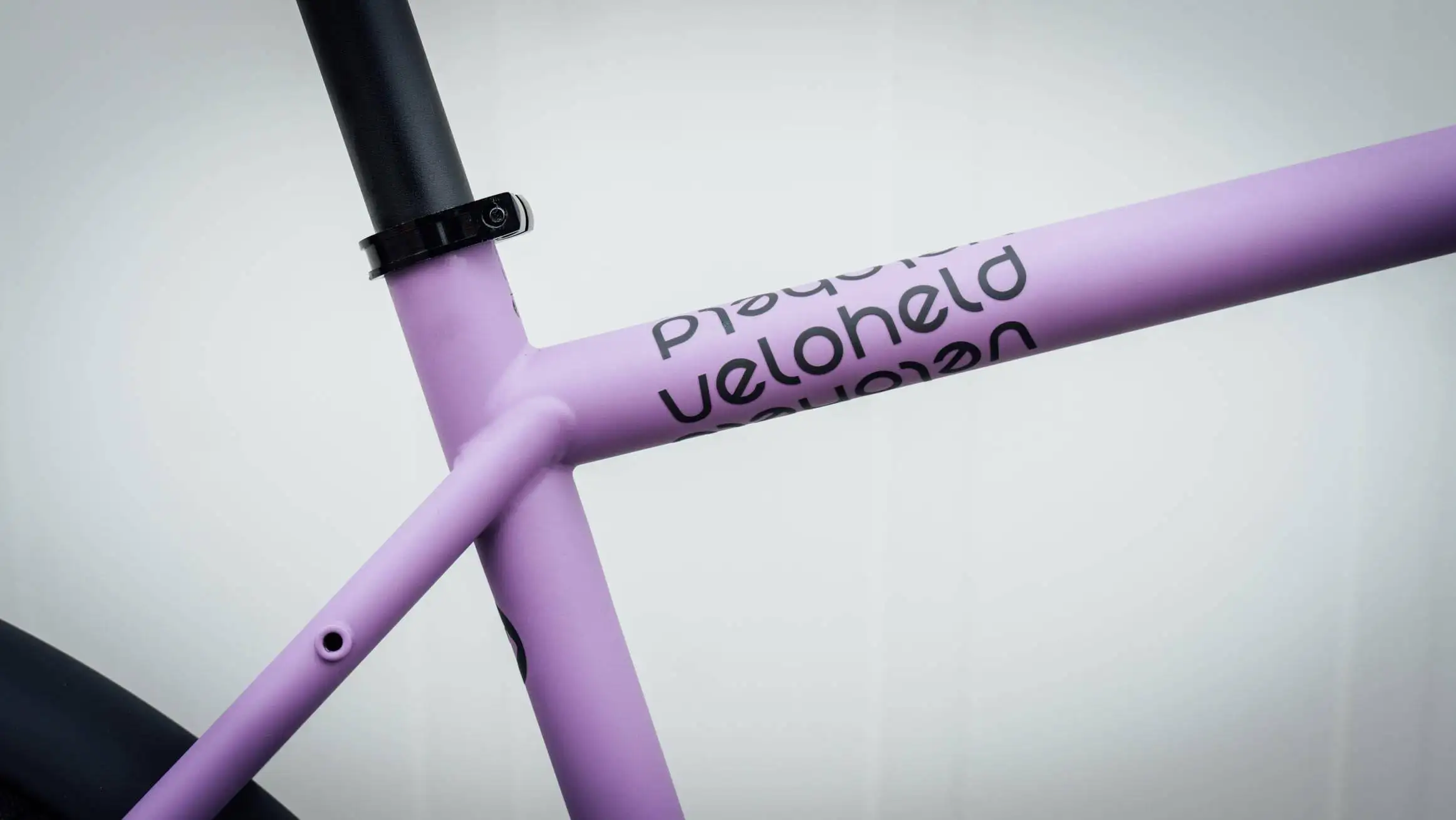 …und genau darum zeigen wir euch dieses strahlende veloheld.path in der Wunschfarbe blaulila. Mit Schutzblech und Gabel in schwarz matt wird das ganze Bike in seiner Komposition abgerundet. Nicht nur die Farbe, sondern auch die Komponenten heben unsere Laune. Der Rahmen in Größe L wurde unter anderem mit einer Shimano Schaltung Alfine 8 und einer Beleuchtung von busch+müller IQ-XS aufgebaut. Der Riemenantrieb ist von Gates Carbondrive CDN.