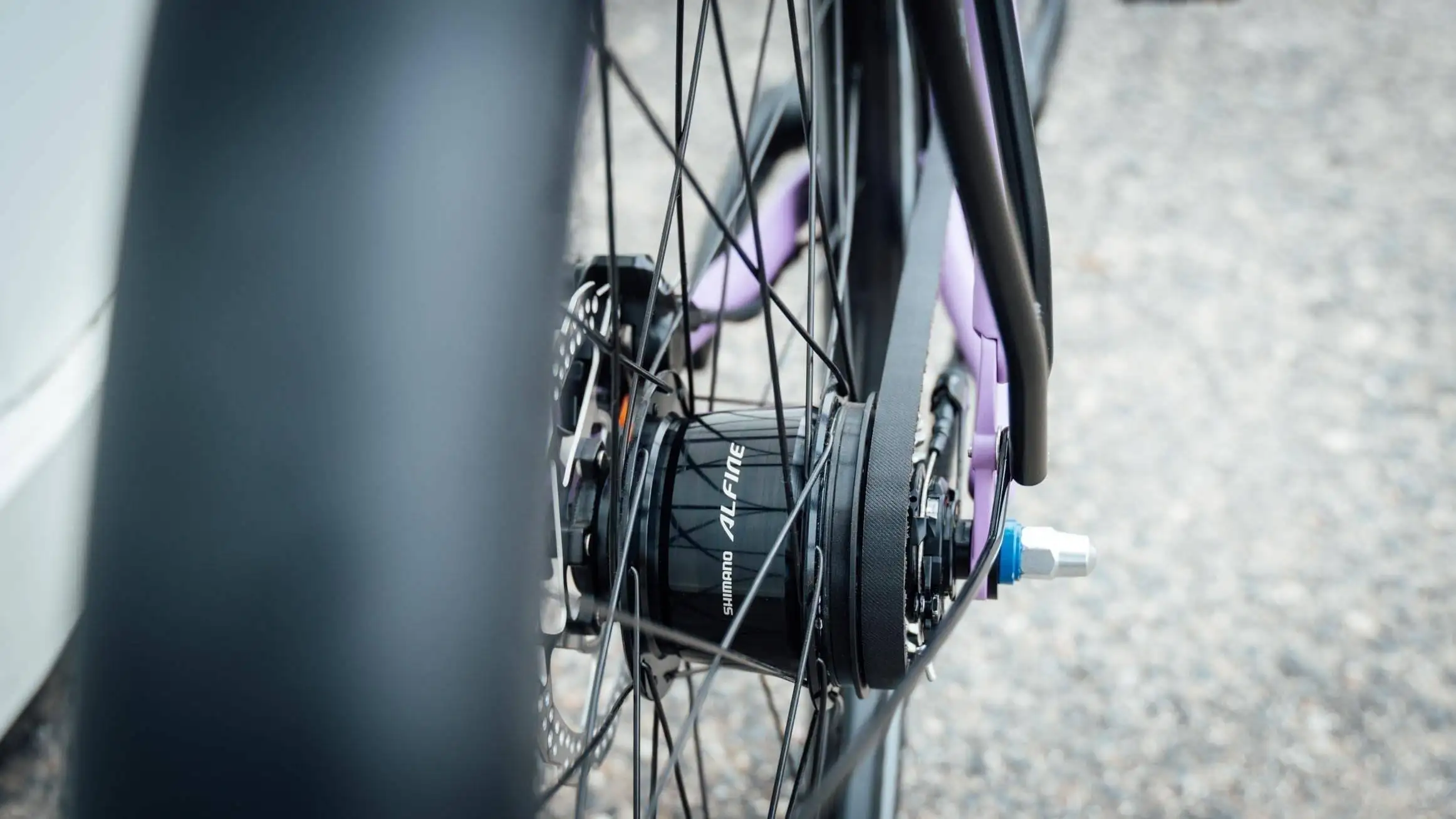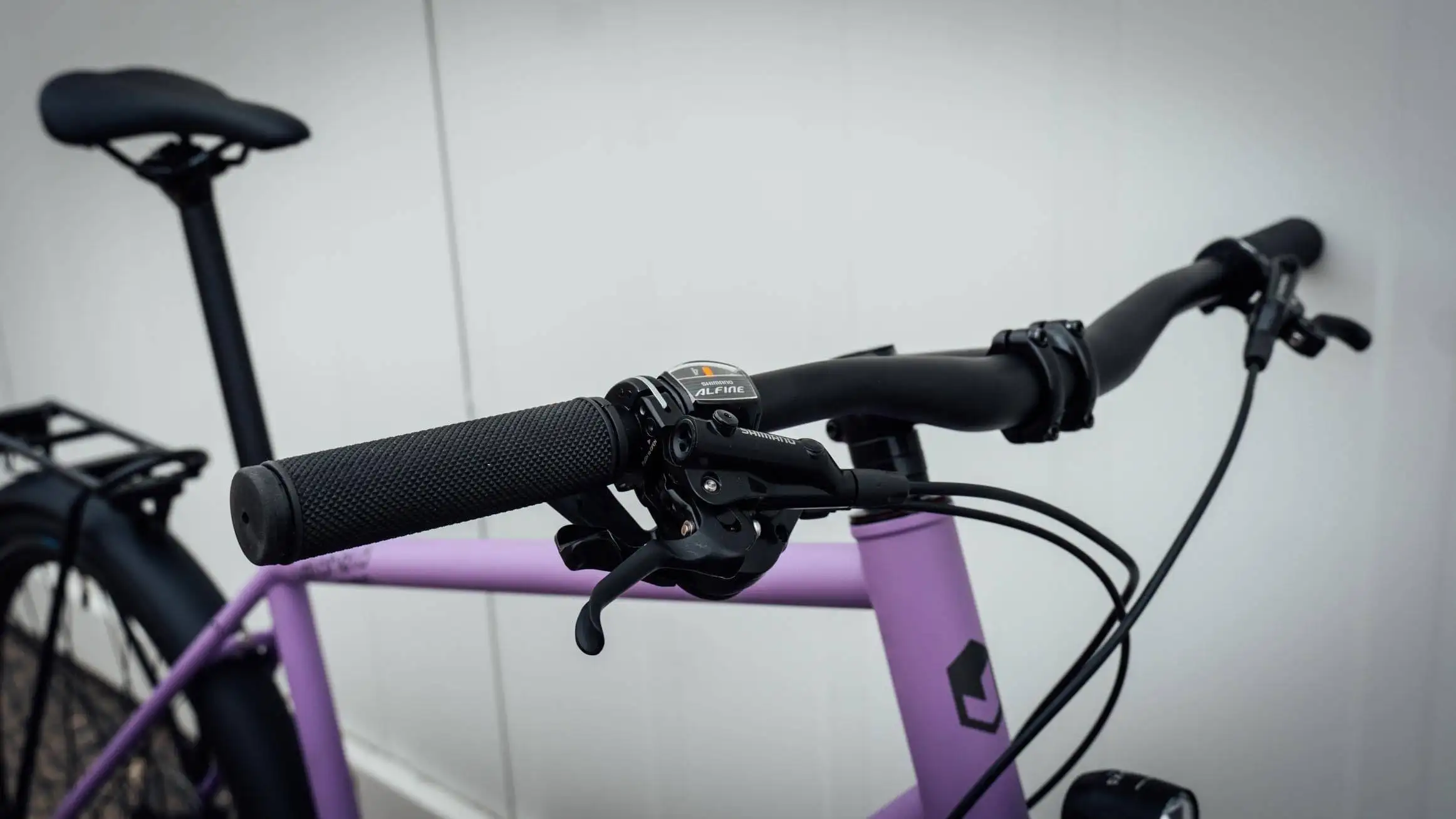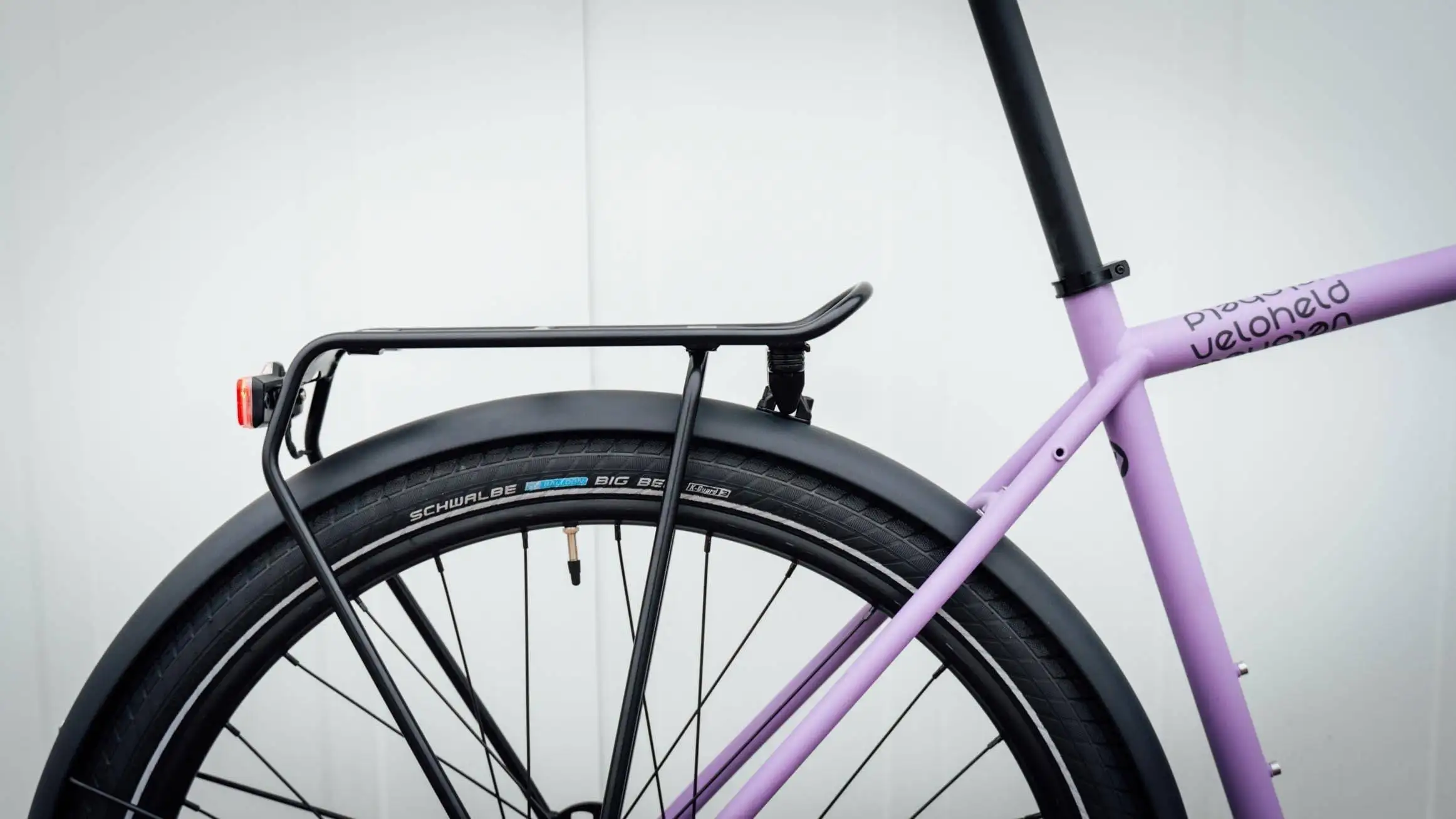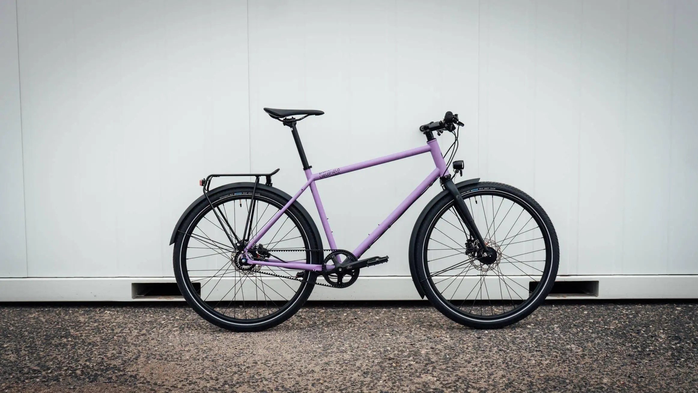 …und genau darum zeigen wir euch dieses strahlende veloheld.path in der Wunschfarbe blaulila. Mit Schutzblech und Gabel in schwarz matt wird das ganze Bike in seiner Komposition abgerundet. Nicht nur die Farbe, sondern auch die Komponenten heben unsere Laune. Der Rahmen in Größe L wurde unter anderem mit einer Shimano Schaltung Alfine 8 und einer Beleuchtung von busch+müller IQ-XS aufgebaut. Der Riemenantrieb ist von Gates Carbondrive CDN.