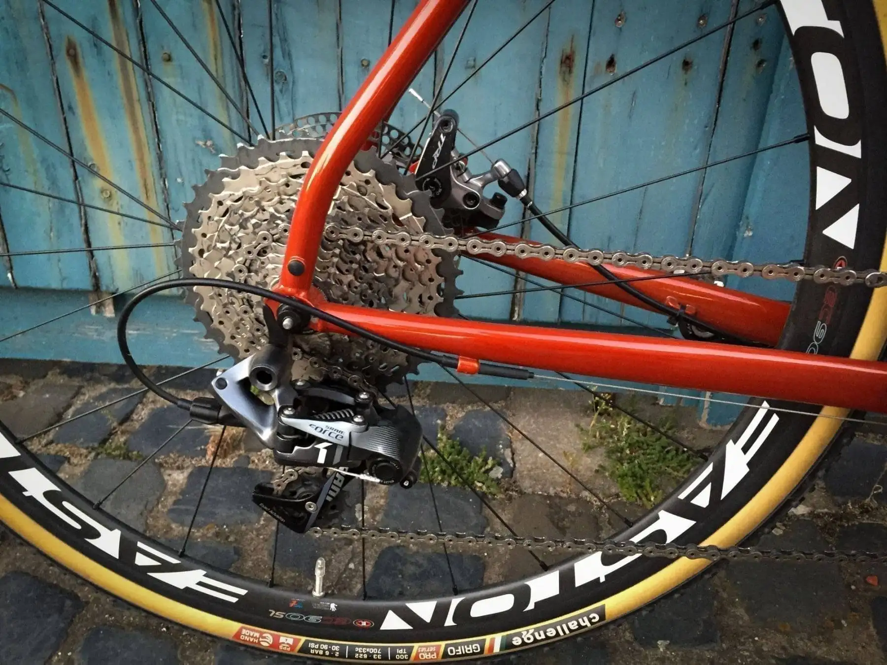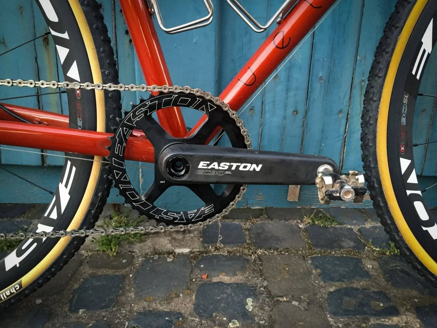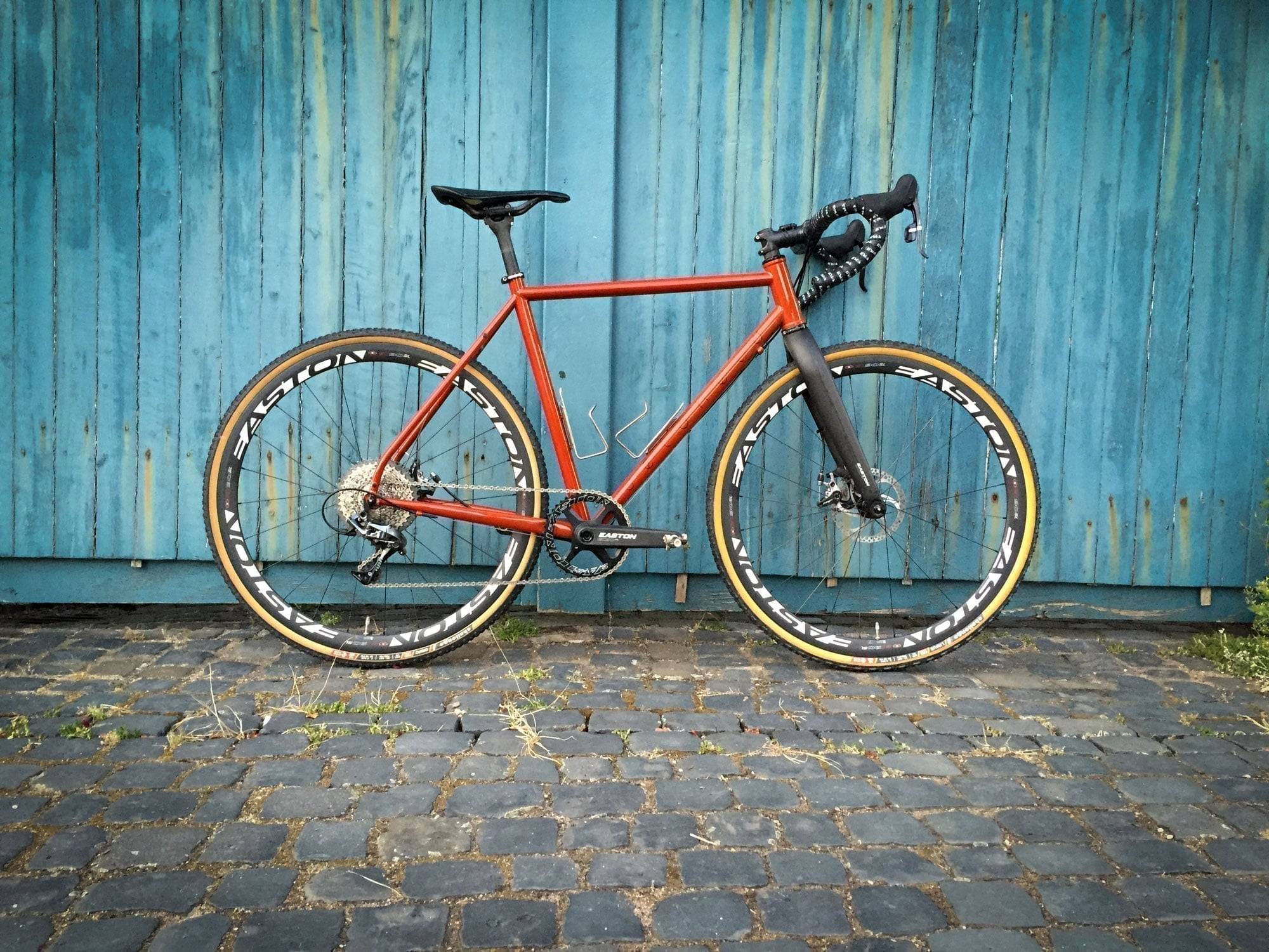 Was für eine Maschine! Florians neuer veloheld.iconX Crosser in der Sonderfarbe „Illusion Rootbeer“. Als Rahmenhöhe wählte er die M und bei den Teilen wurde nicht gegeizt: Easton EC90 XD Gabel, EC90 SL Felgen, EC70 Zero Sattelstütze und EC90 SL Kurbeln. Sram Force Schaltung, Acros Naben, eine wilde Acros-Syncros Steuersatzmischung, Fizik Sattel und TRP Spyre Bremsen.