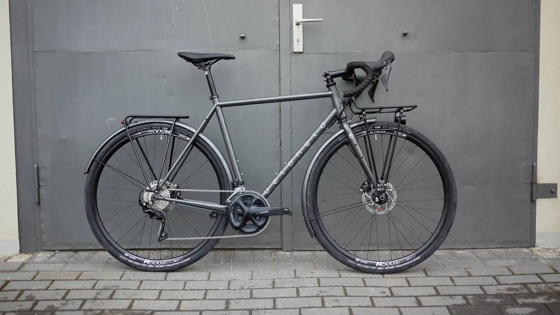 Gravel und Cargo? Mit diesem veloheld.iconX Gravel-Tourenbike kann bei der nächsten Bikepacking-Tour genug und stilsicher auf dem schicken Pelago Frontgepäckträger transportiert werden.