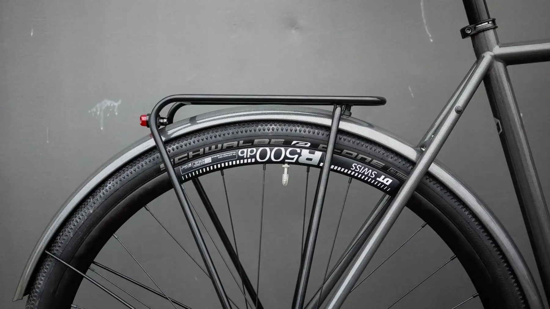 In der klassisch schönen Wunschfarbe Perlnachtblau (RAL 5025) mit silbernem Dekor kommen Rahmen (Größe M) und Stahlgabel daher. Schwarz kontrastierend sind die Schutzbleche und auch Komponenten gewählt. Darunter die „gravelige“ 2×11 Shimano GRX Gruppe und auch die Ritchey WCS Komponenten. Ein besonderes Highlight sind die Reifen. Die Maschine rollt nämlich auf wunderschönen 38 mm breiten Rene Herse Barlow Pass Reifen mit Skinwall Seitenwand. ⁠⠀