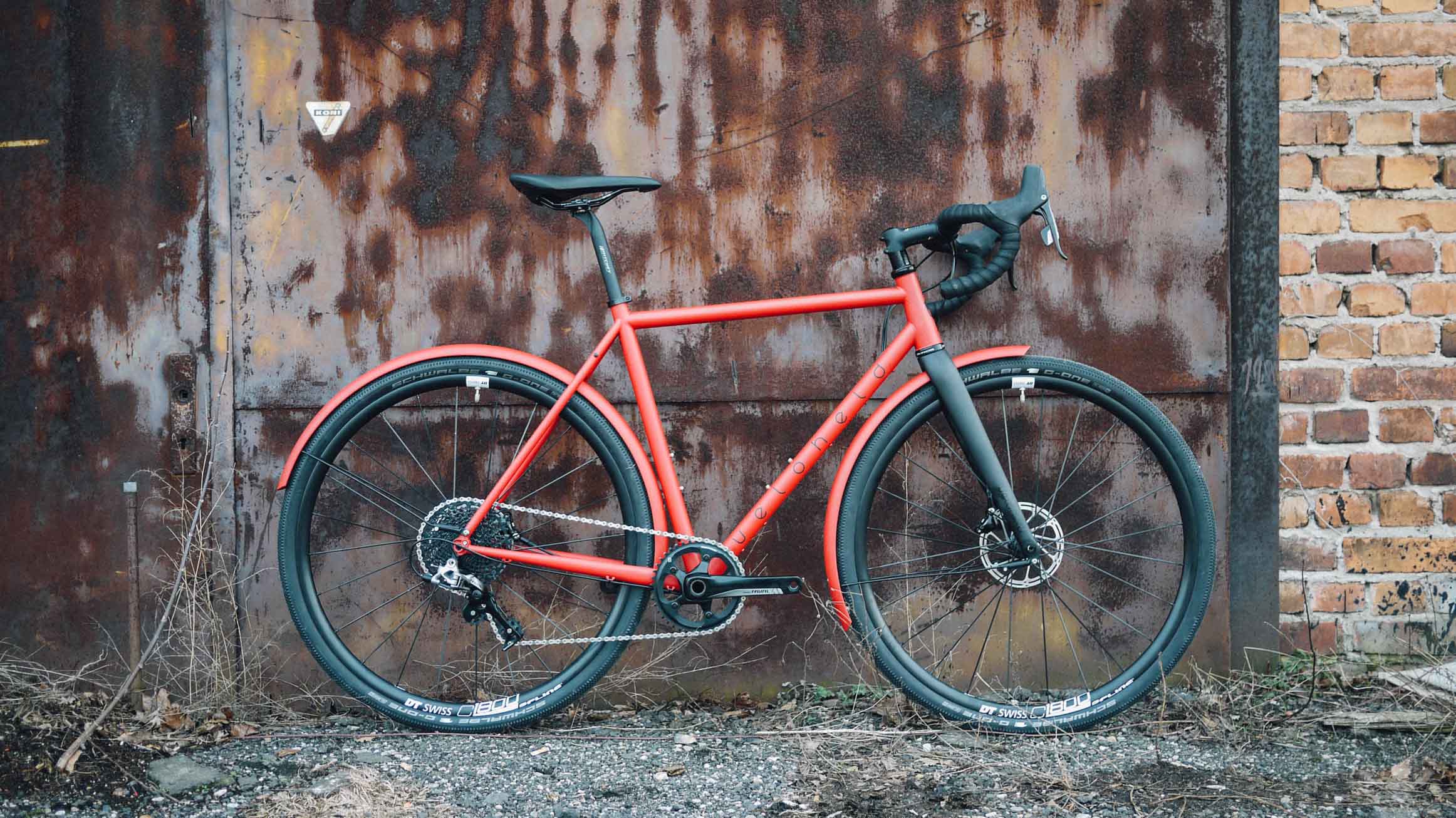 Das veloheld Rad der Woche kommt heute in verdammt heißen Karminrot (RAL 3002) – und das sogar mit passenden Schutzblechen in der gleichen Farbe für weniger heiße Tage.
