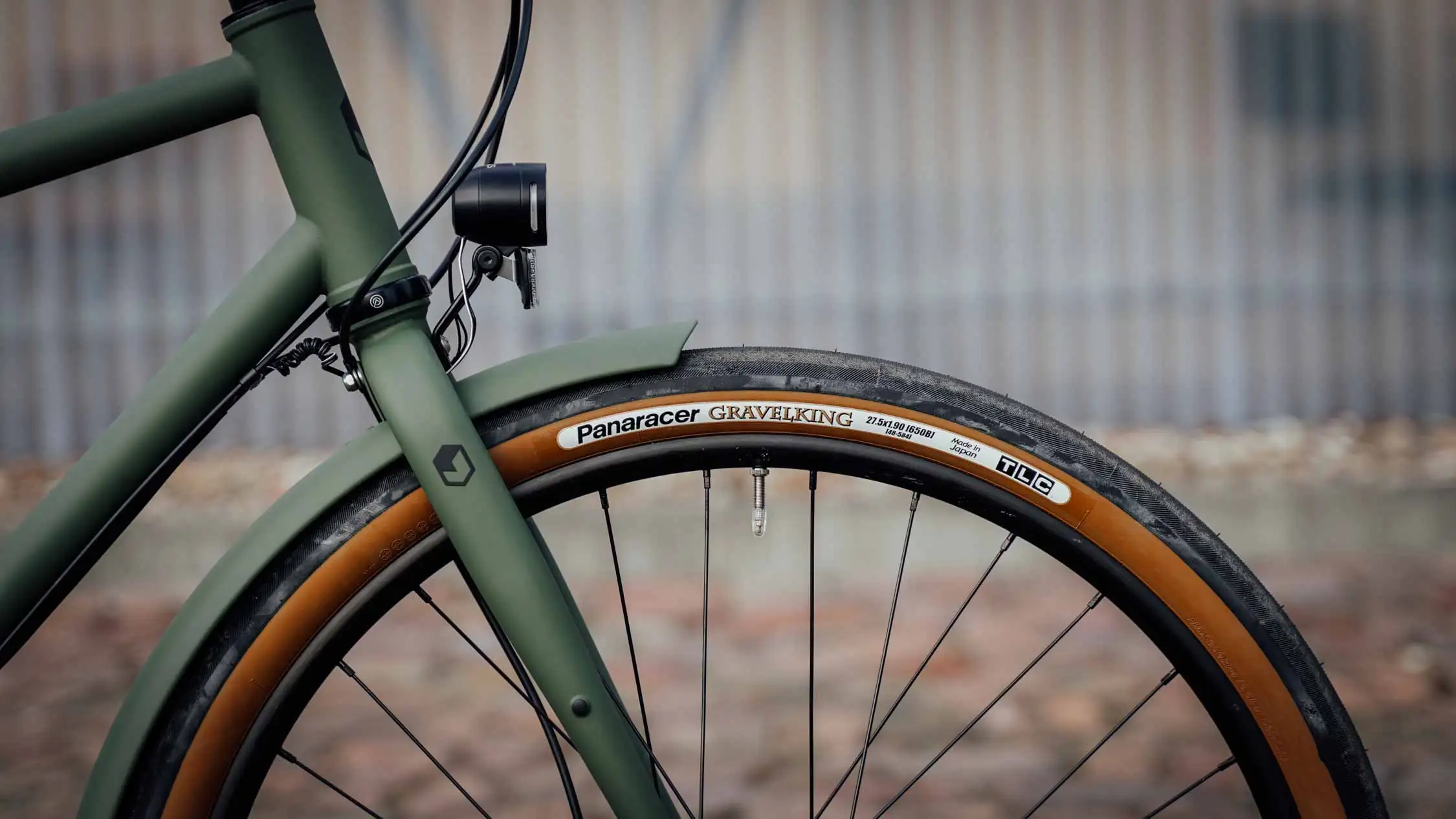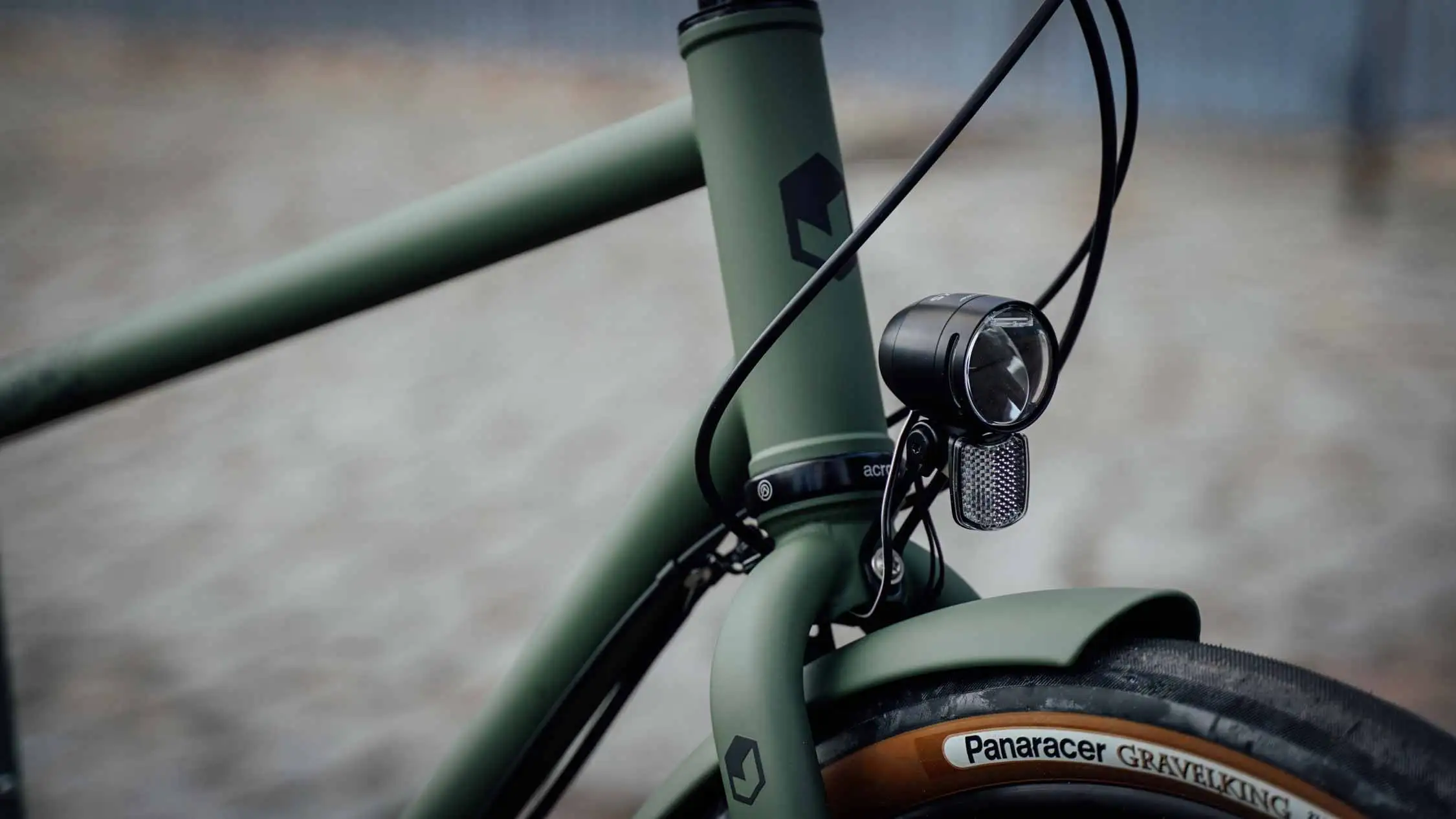Neben dem Gates CDN Riemenantrieb und der standardmäßig verbauten Shimano Alfine 11, setzt der Kunde bei diesem Rad auf die Panaracer Gravelking Slick 48-584 Reifen mit braunen Seitenwänden. Natürlich haben wir auch hier wieder eine Lichtanlage verbaut, diesmal von Busch und Müller. Damit ist dieses mediterrane Stadtrad auf alle Überraschungen vorbereitet, die der Stadtdschungel zu bieten hat.