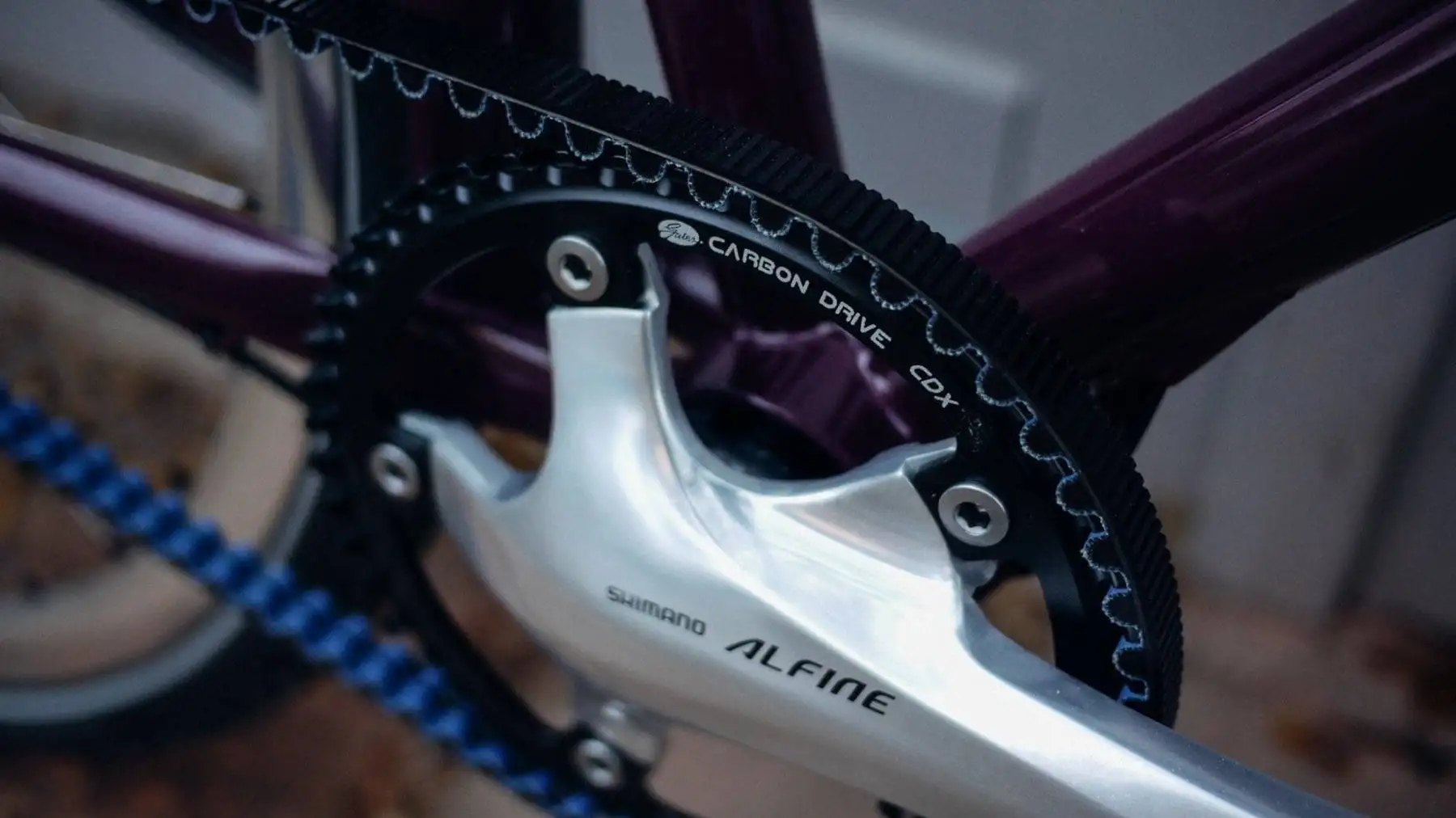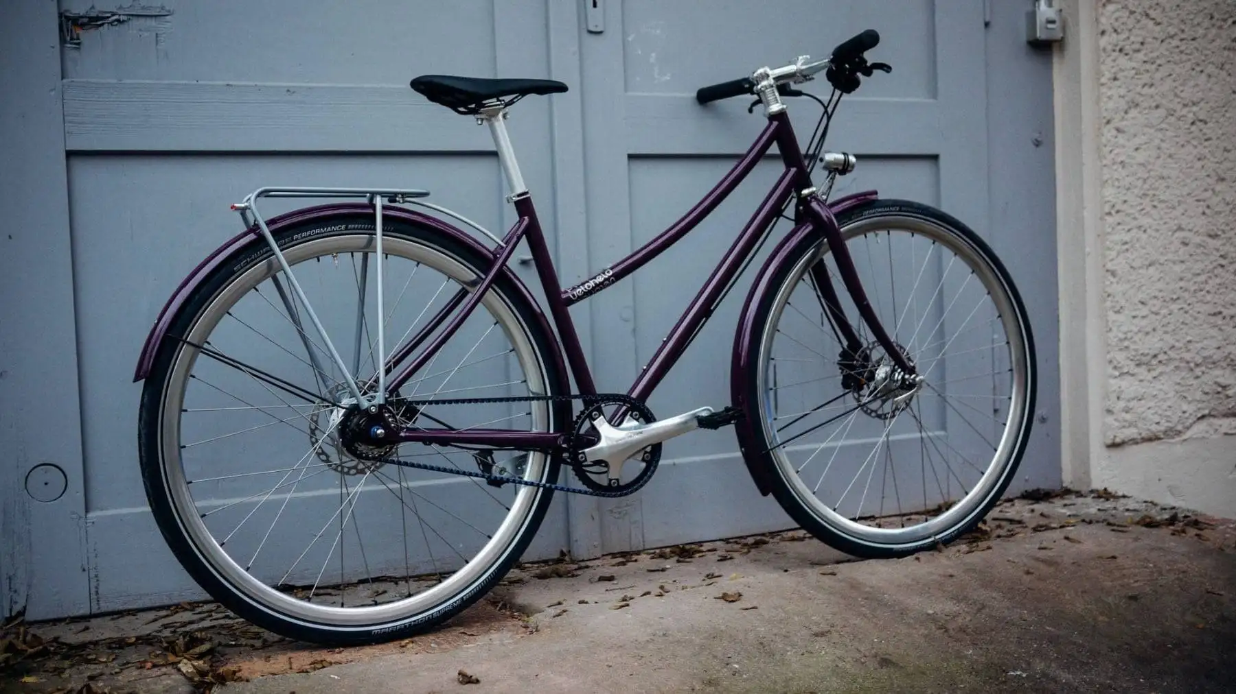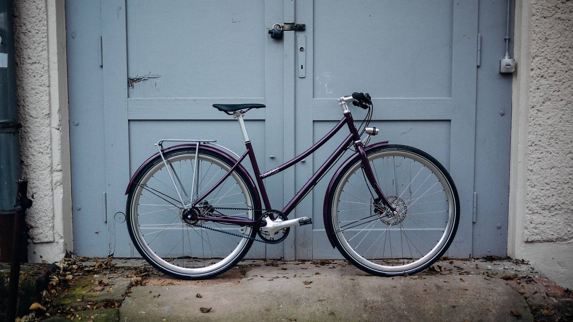 Purpurviolett oder auch RAL 4007 genannt ist die Farbe für dieses Rad. Zusammen mit den silbernen Komponenten ergibt dies eine wunderschöne Kombination für dieses Citybike.