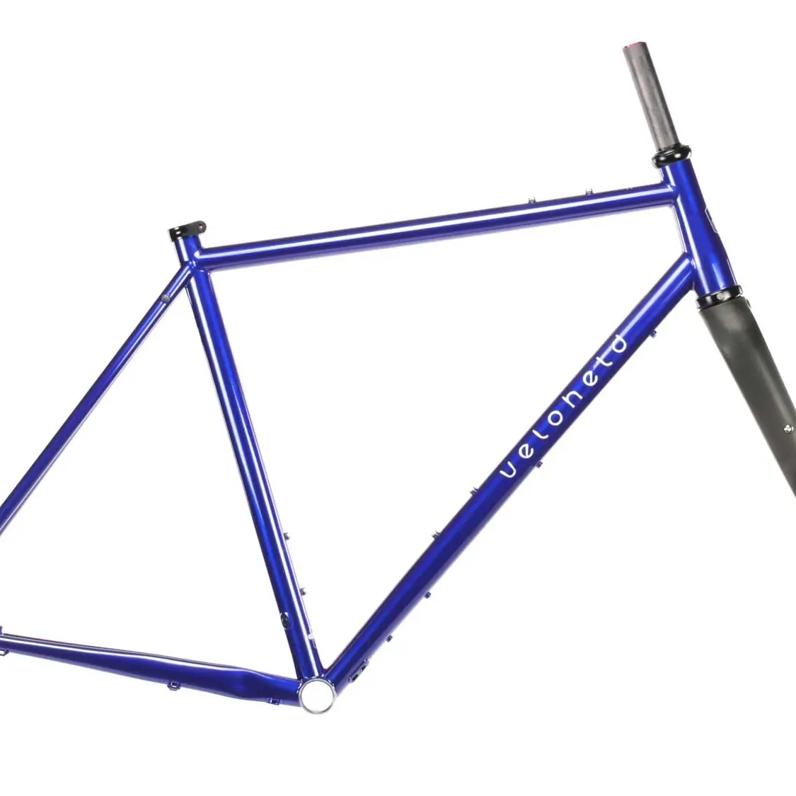 - Gabel: doppelt endverstärkte Rohre aus 4130 CroMoly, 1 1/8″ – 1 1/2″ Steuerrohr, Ösen für Front-Gepäckträger