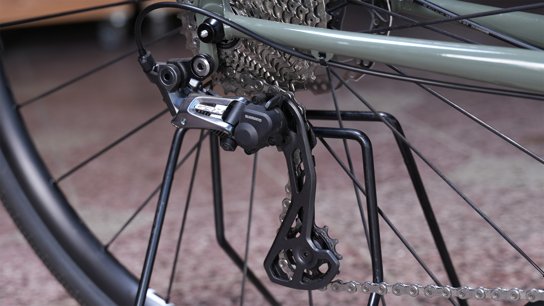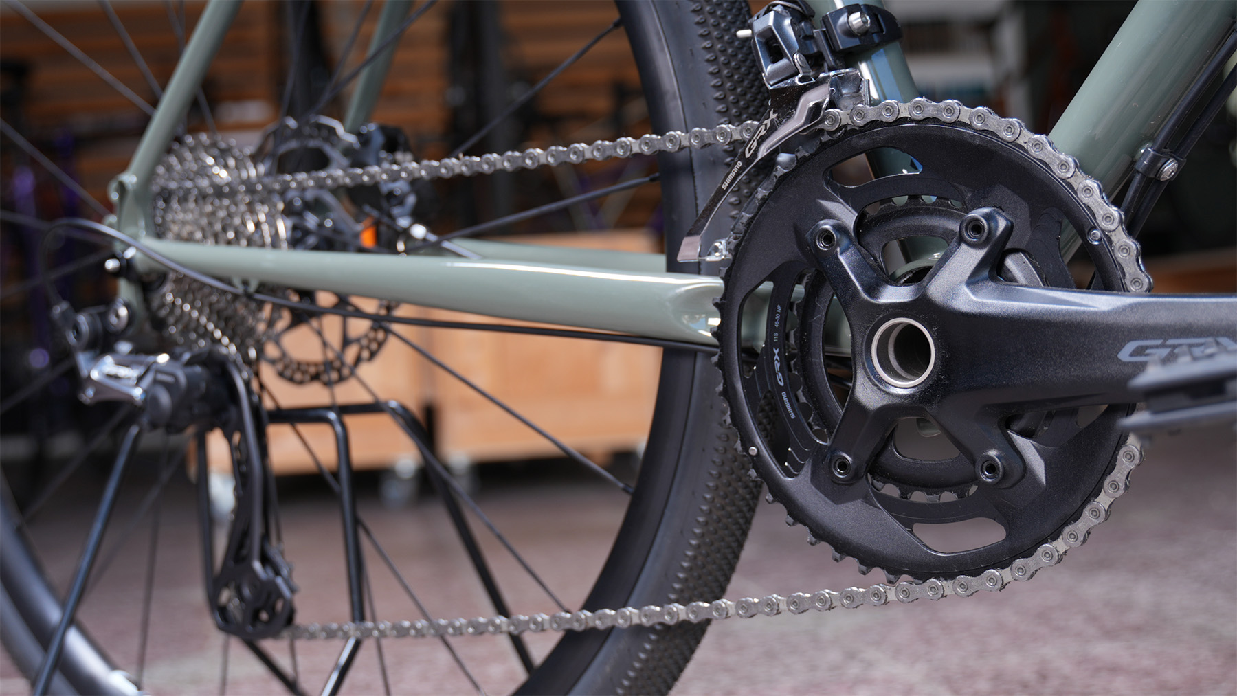 - Rahmen: doppelt endverstärkte Rohre aus 4130 CroMoly Stahl, WIG-geschweißt, EBB-Exzenter Innenlagergehäuse zum Spannen des Riemens und Edelstahl Ausfallenden mit innenliegender Scheibenbremsaufnahme