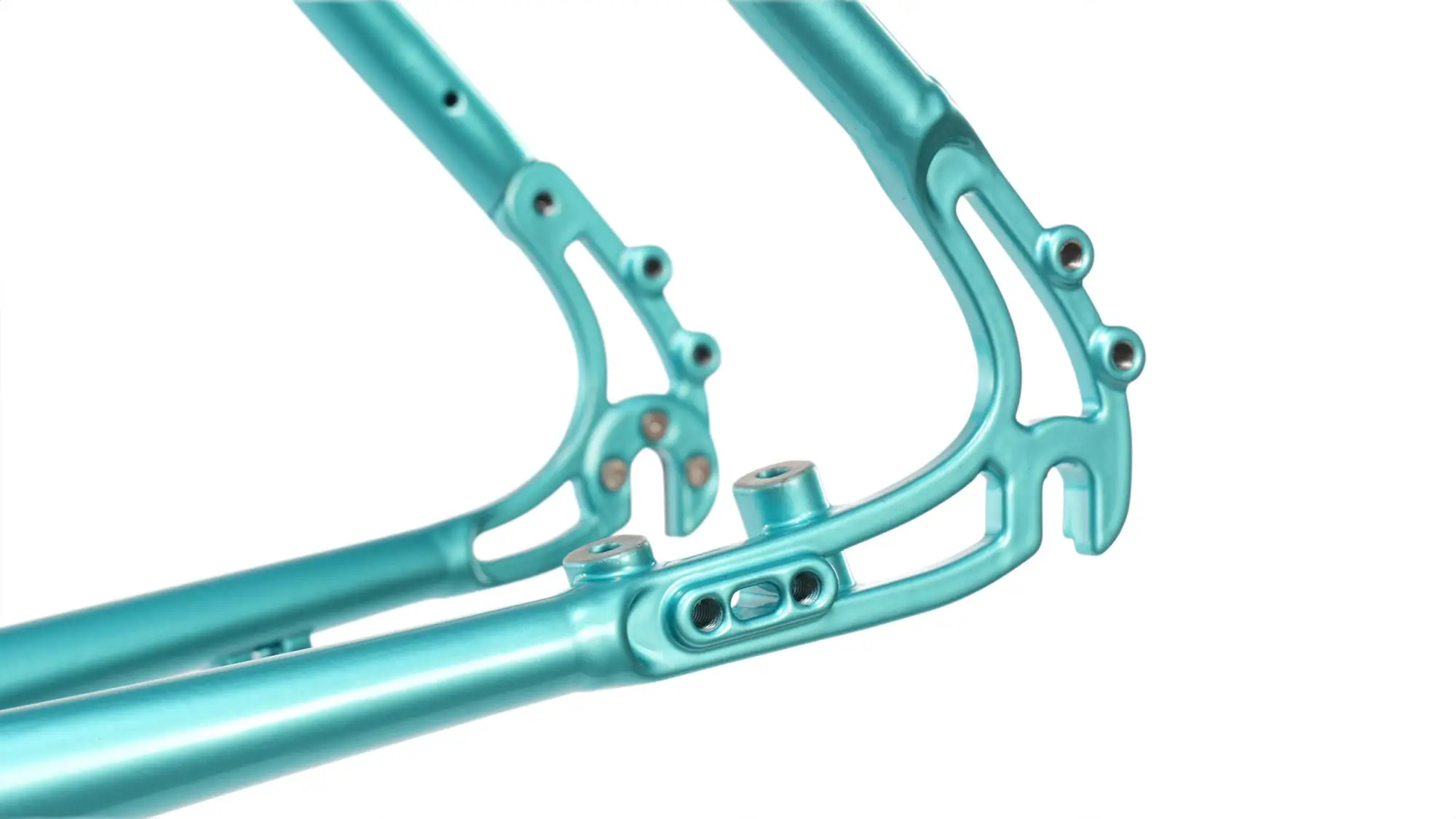 doppelt endverstärkte Rohre aus 4130 CroMoly, tapered Steuerrohr (ø 1 1/8 – 1 1/2 ), innen geführtes Lichtkabel möglich, “Triple Cage” Ösen für Front-Gepäckträger oder auch „Anything Cages“