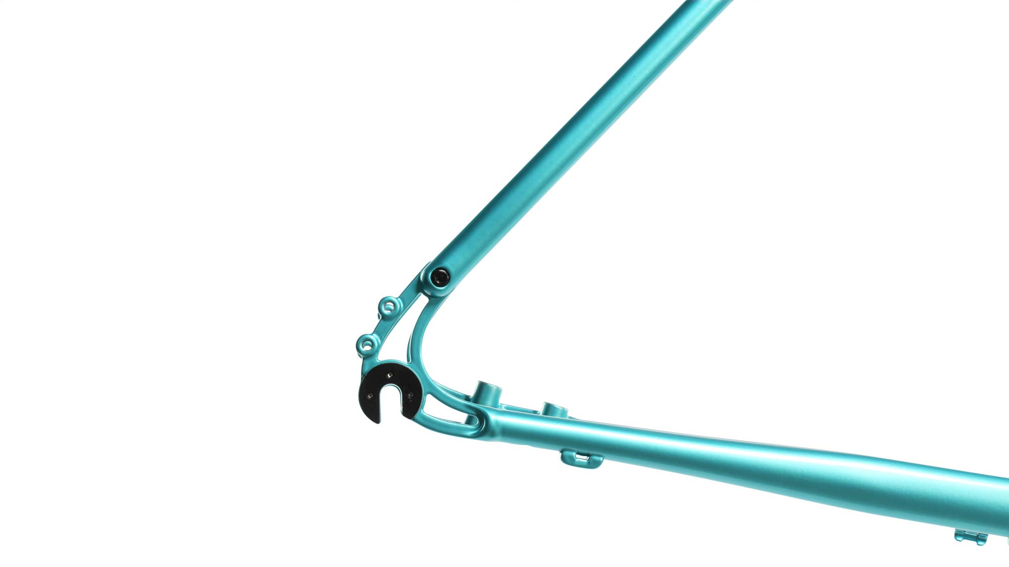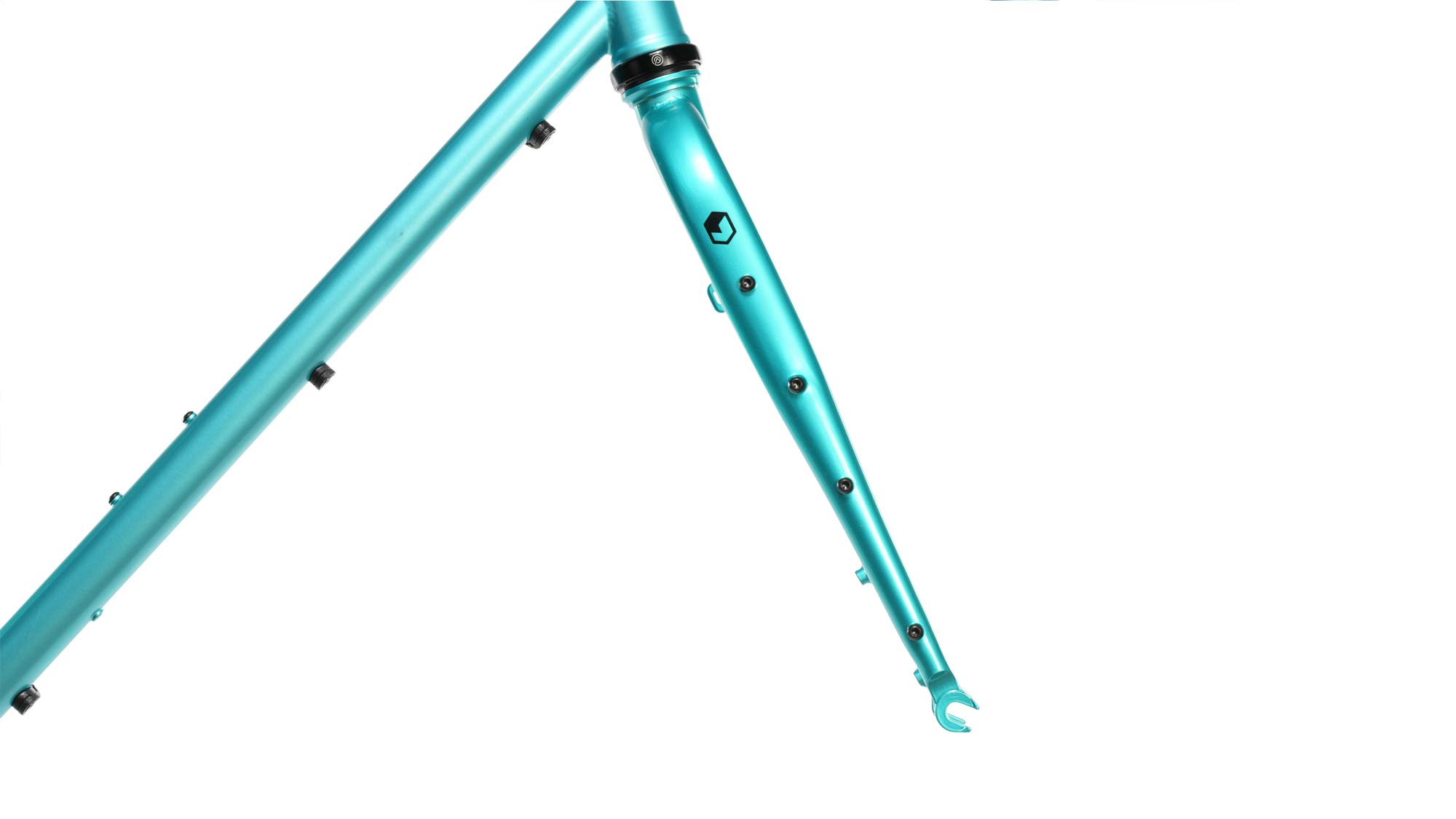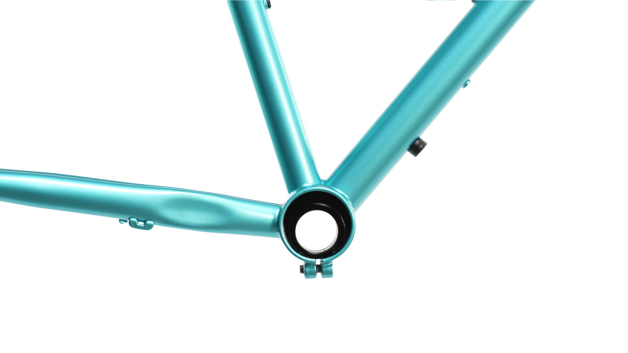 doppelt endverstärkte Rohre aus 4130 CroMoly, tapered Steuerrohr (ø 1 1/8 – 1 1/2 ), innen geführtes Lichtkabel möglich, “Triple Cage” Ösen für Front-Gepäckträger oder auch „Anything Cages“