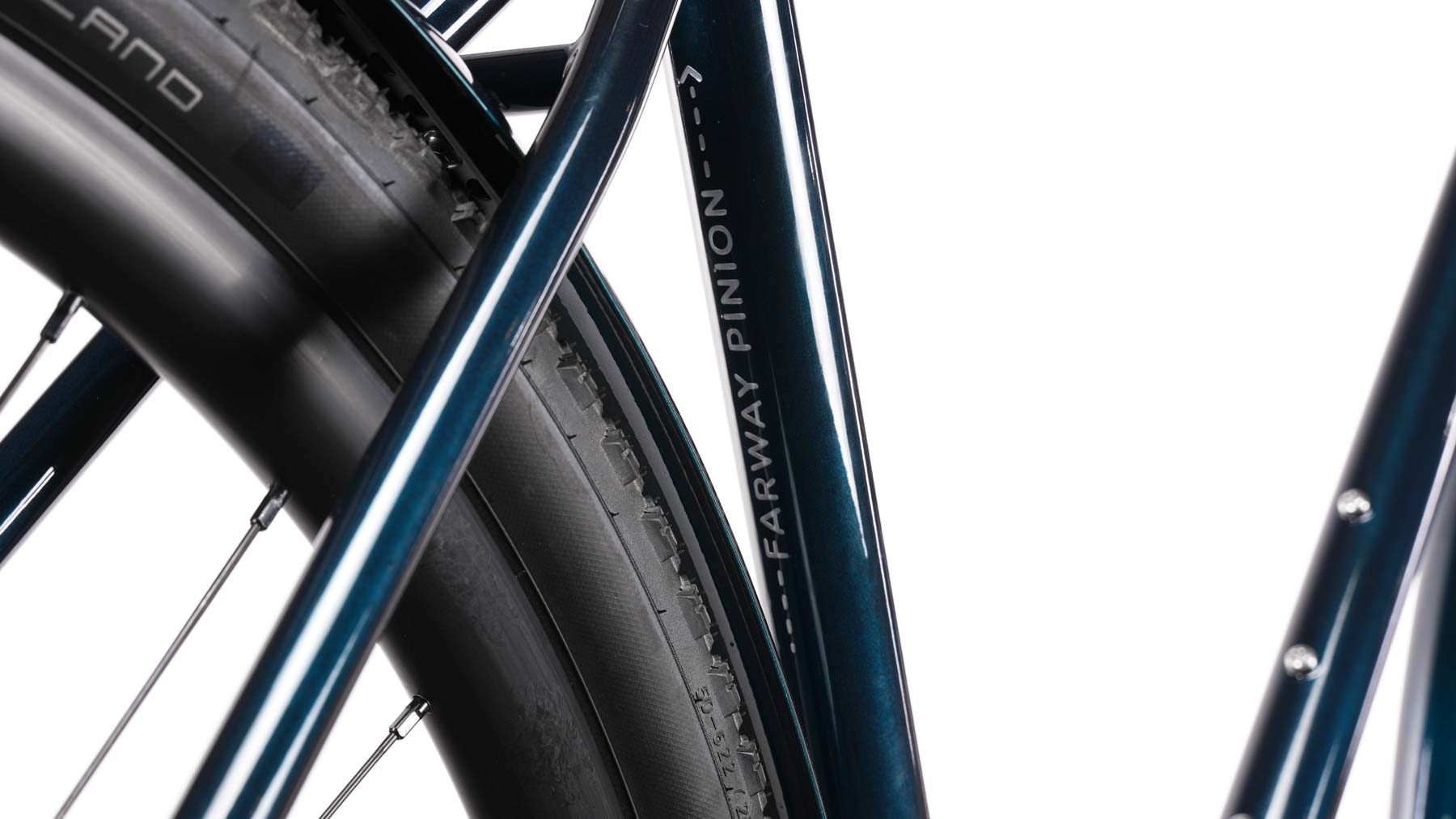 Mit 28 Zoll Laufrädern und 50 mm breiten Schwalbe Reifen bietet es viel Komfort und Traktion in jedem Gelände. Wie jedes veloheld Rad ist es individualisierbar und so bereit für Deine Abenteuer auf der langen Tour. Insgesamt kombiniert das veloheld.farway Pinion so perfekt Robustheit, Wartungsarmut und Komfort – ideal für Entdecker ohne Kompromisse.