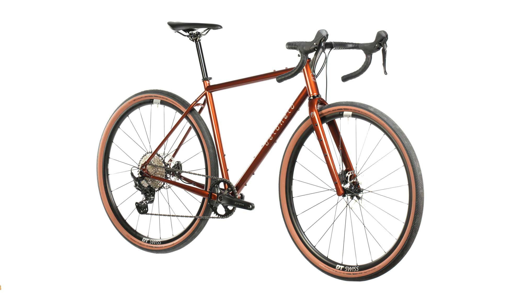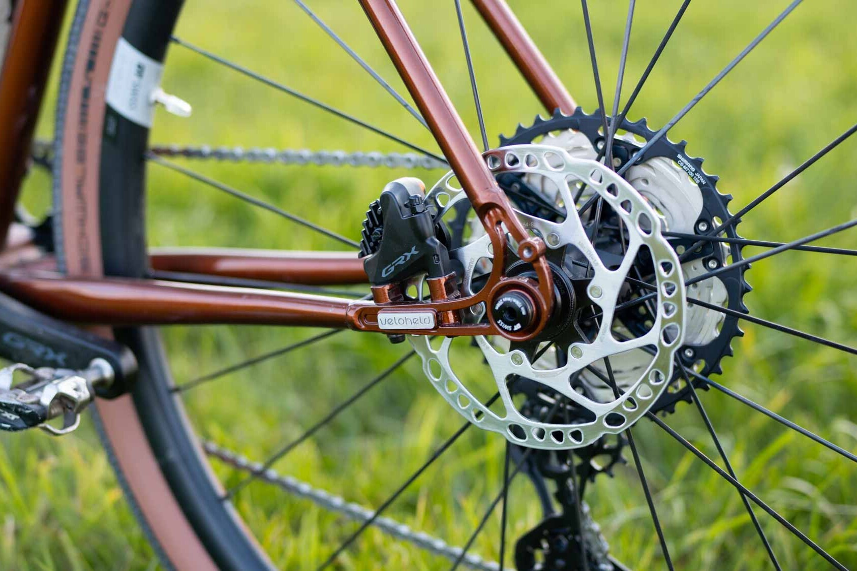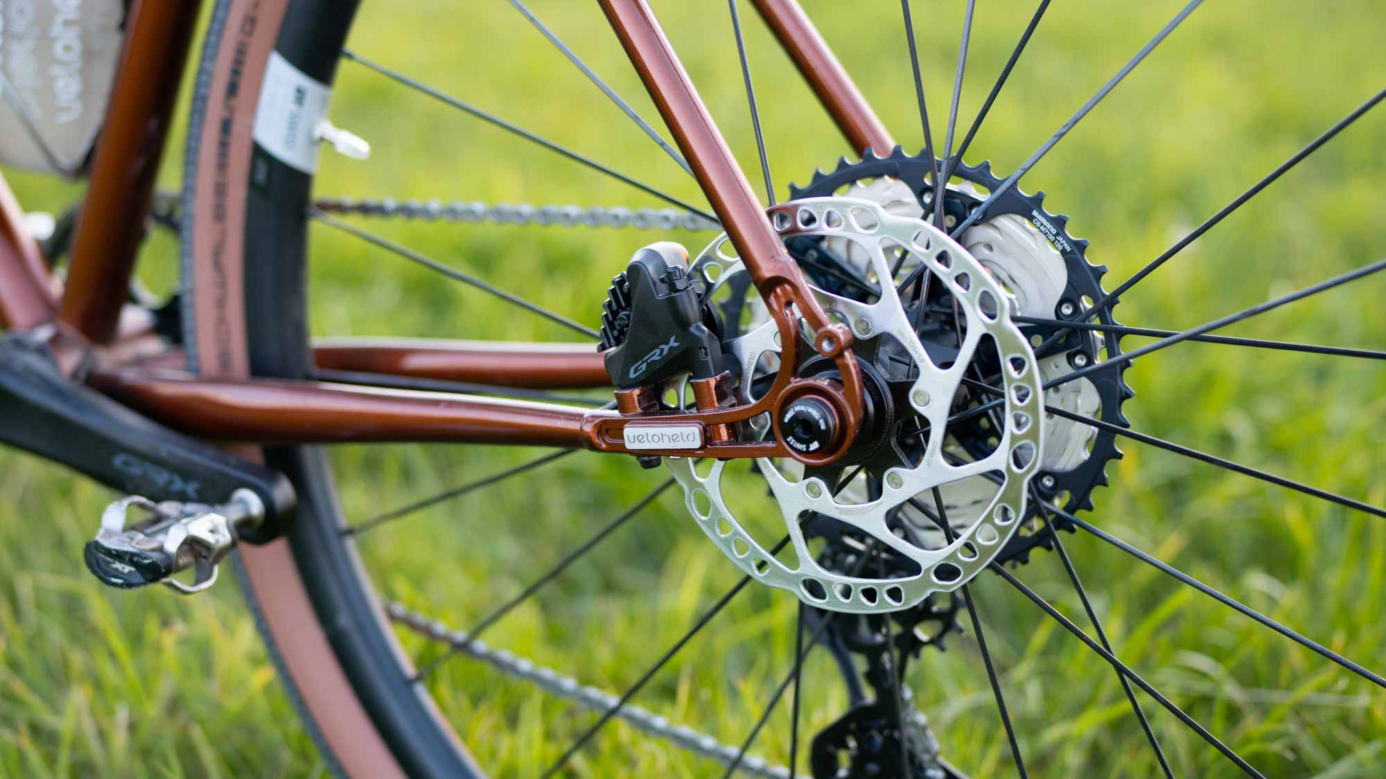- doppelt endverstärkte Rohre aus veloheld.CrMo Stahl, WIG-geschweißt, 46mm Steuerrohr, Di2 ready, im hinteren Rahmendreieck liegende Flatmount-Scheibenbremsaufnahme für 160 mm Bremsscheiben