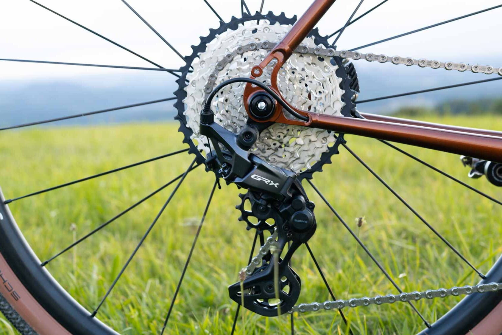 max bis ca. 50-622 (28″) oder 54-584 (27.5″) mm breite Reifen (je nach Fabrikat und Felge) ohne Schutzbleche in Rahmen und Gabel möglich