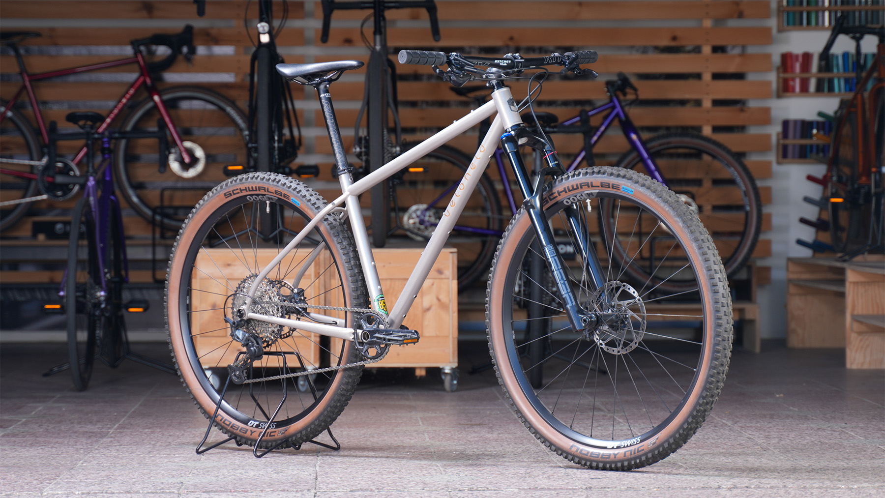 - Reifen: Schwalbe Nobby Nic, 29×2.4, Bronze Skin, faltbar, Tubeless Easy (Auslieferung mit Schlauch)