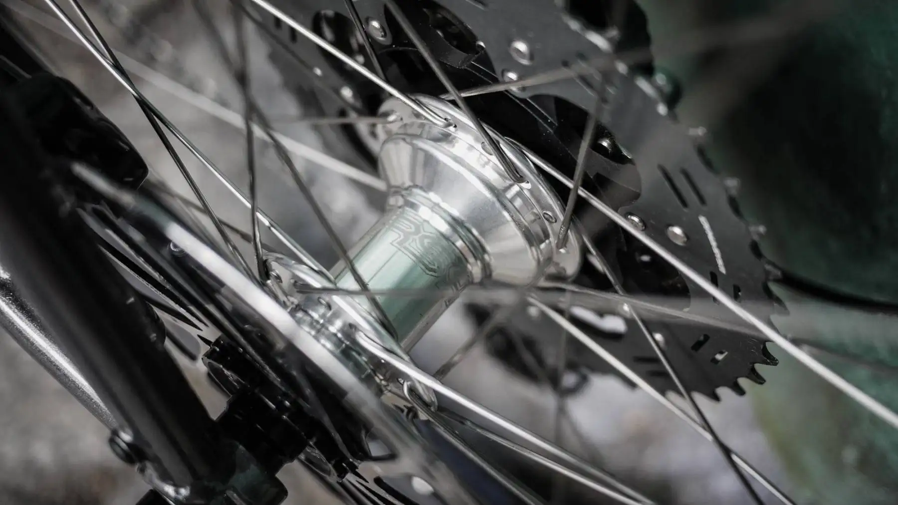 Vorbau und Sattelstütze kommen von Thomson und wurden mit einem SOMA Lenker kombiniert. Damit dieser sich dreht, gab es noch einen silbern blinkenden Chris King Steuersatz. Die SRAM Rival Schaltung macht das Rad mit den 1×11 Gängen für den gewünschten Einsatzbereich gangbar. Damit das Rad im Dunklen bewegt werden kann, leistet vorn und hinten eine SON Beleuchtungsanlage ihren Dienst. Vorn ist die SON Edelux II an einem Pelago Frontträger befestigt, der sicherlich nicht nur für den Transport von Schokolade zu Ostern seine Qualitäten beweisen wird. Sicherlich gibt es auch zu Weihnachten…