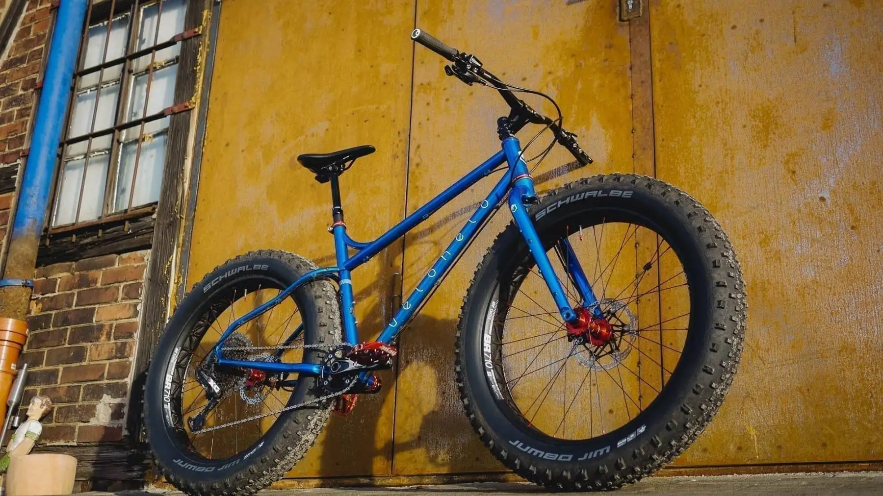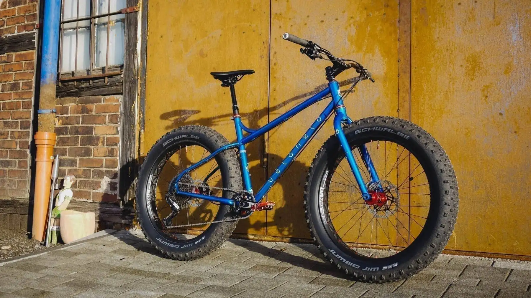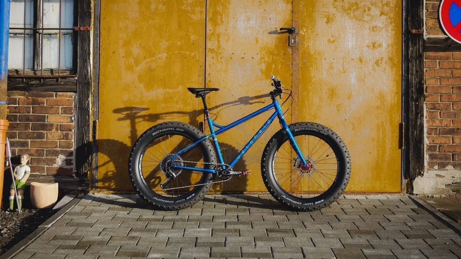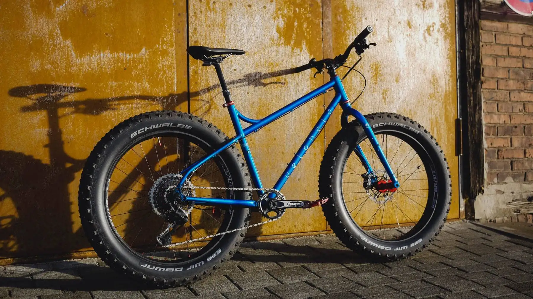 Für dieses veloheld.fat iron Fatbike stand „Optimus Prime“ aus der „Transformers“ Filmreihe Pate. So wurde der Rahmen und die Gabel in der Farbe „Anodized Blue“ pulverbeschichtet und mit einer Menge kontrastierender rot eloxierten Teile von Hope aufgebaut. Die Hope Pro4 Fatsno Naben, Steuersatz, Innenlager, Sattelklemme, Ventilkappen und die Nippel – alles in rot. Dazu gab es noch eine Menge schwarzer Wunschkomponenten, wie Hope Kurbeln, Bremsen und Vorbau, sowie ein Crank Bros Opium 3 Lenker, DT-Felgen auf denen 4.8″ breite Schwalbe Jumbo Jim Reifen sitzen. Ein Highlight am Rad ist sicherlich die kabellose Magura VYRON eLECT Sattelstütze. Mit einem kleinen Knopf am Lenker wird per Funk die Info zum „Hoch und Runter“ der Sattelstütze gegeben.
