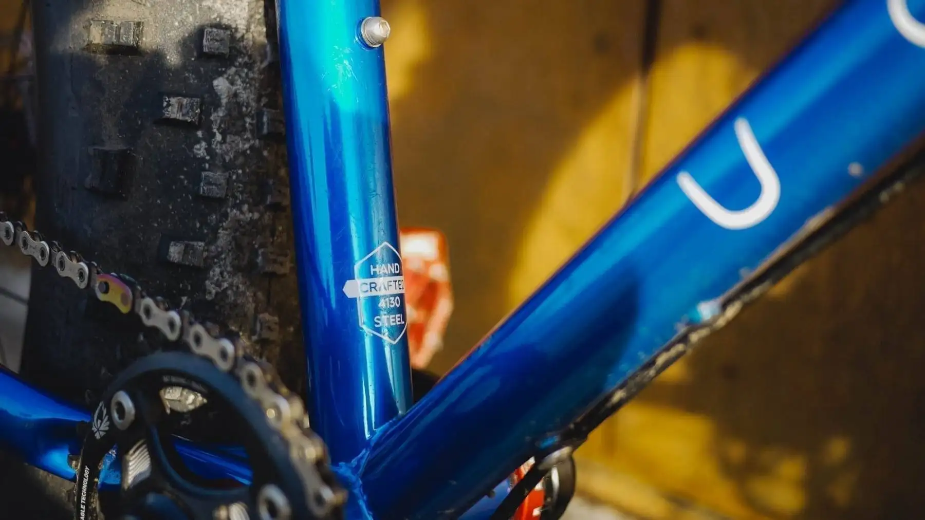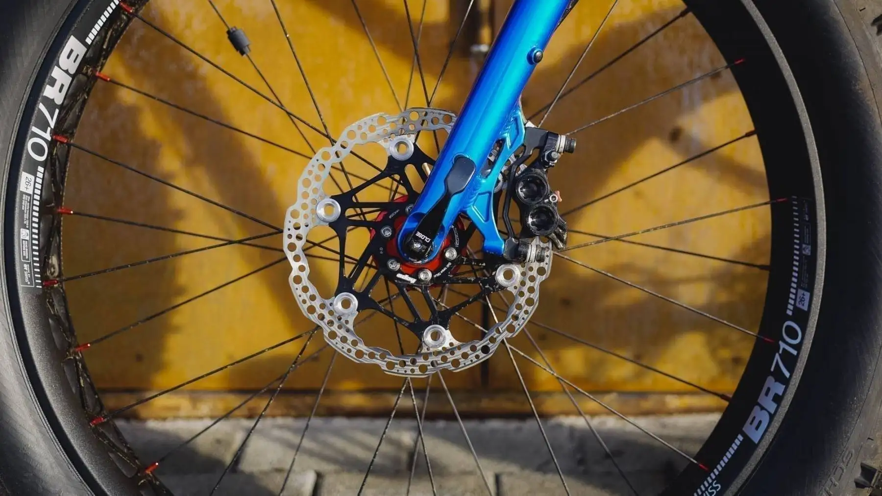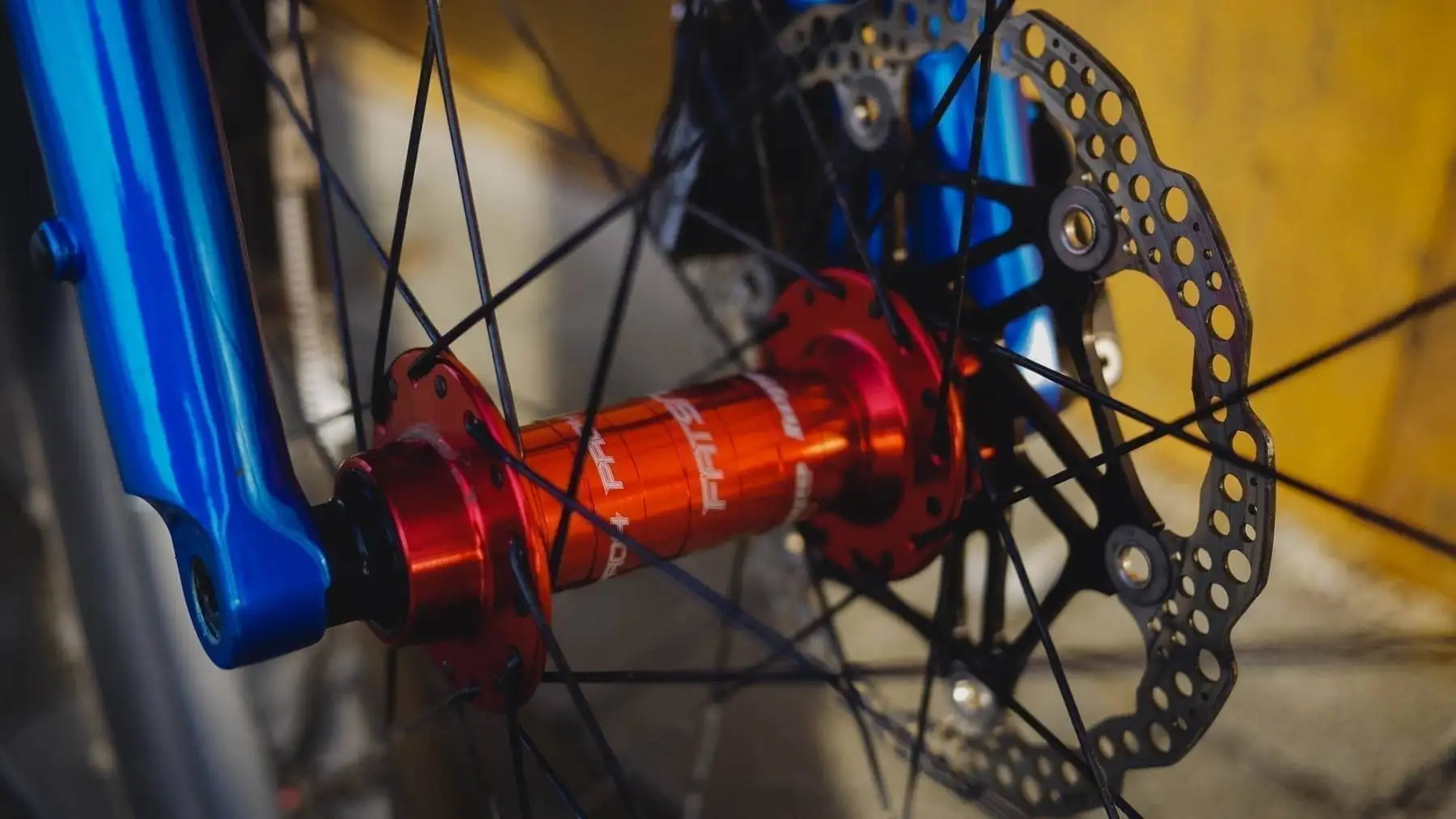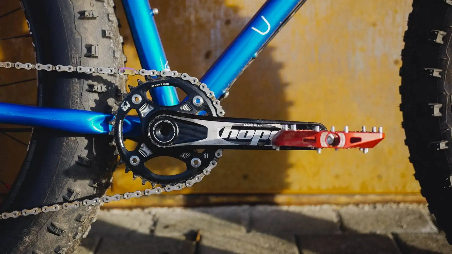 Für dieses veloheld.fat iron Fatbike stand „Optimus Prime“ aus der „Transformers“ Filmreihe Pate. So wurde der Rahmen und die Gabel in der Farbe „Anodized Blue“ pulverbeschichtet und mit einer Menge kontrastierender rot eloxierten Teile von Hope aufgebaut. Die Hope Pro4 Fatsno Naben, Steuersatz, Innenlager, Sattelklemme, Ventilkappen und die Nippel – alles in rot. Dazu gab es noch eine Menge schwarzer Wunschkomponenten, wie Hope Kurbeln, Bremsen und Vorbau, sowie ein Crank Bros Opium 3 Lenker, DT-Felgen auf denen 4.8″ breite Schwalbe Jumbo Jim Reifen sitzen. Ein Highlight am Rad ist sicherlich die kabellose Magura VYRON eLECT Sattelstütze. Mit einem kleinen Knopf am Lenker wird per Funk die Info zum „Hoch und Runter“ der Sattelstütze gegeben.