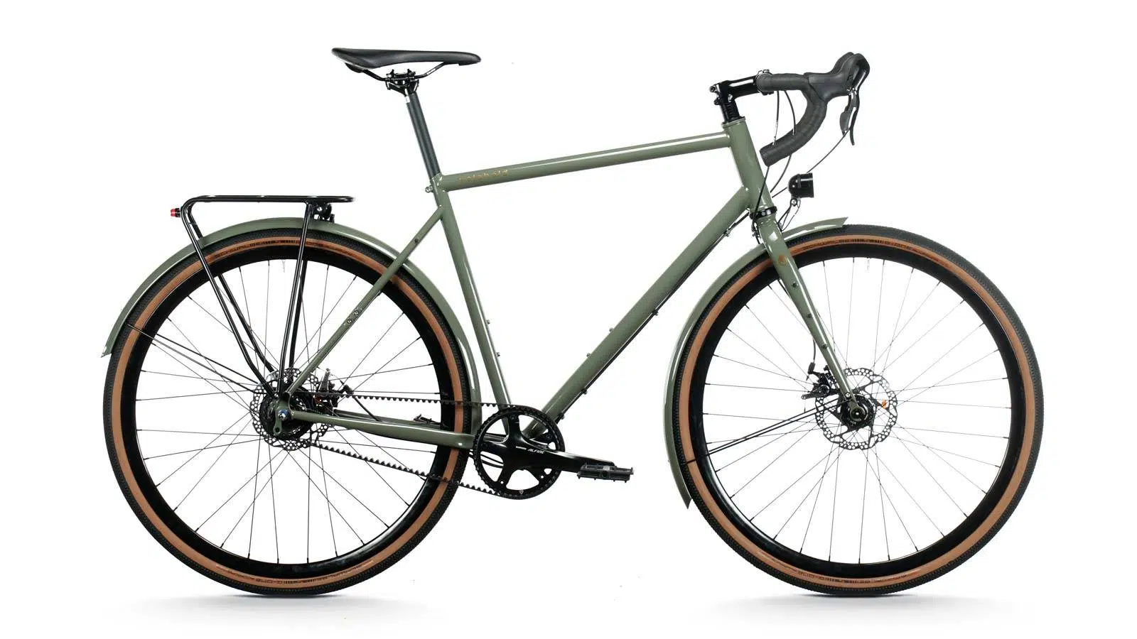 Die Komponenten (Vorbau, Lenker, Supernova Beleuchtung, Shimano Alfine 11-Gangschaltung usw.) wurden hier in silber gewählt und als Kontaktpunkte zwischen Fahrerin und Fahrrad kamen hier komfortable Brooks Teile zum Einsatz. Der wartungsarme Riemenantrieb kommt natürlich standardmäßig von Gates Carbon Drive.